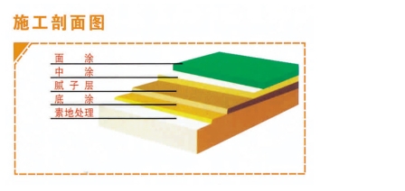 5、面涂:溶濟型環(huán)氧面漆或止滑面漆滾涂二道,完工后整體表面光亮潔凈,顏色均一,無空鼓;